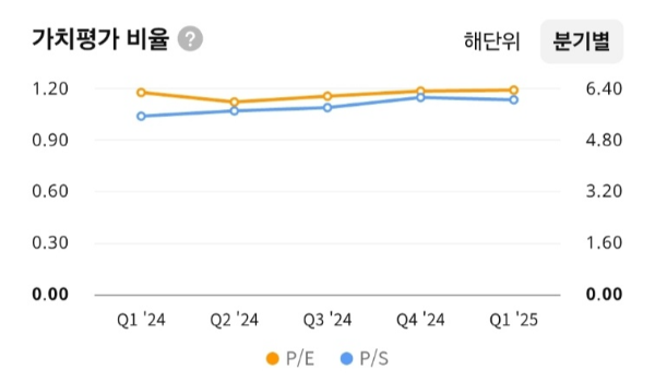 - 최근 1년간 PSR은 평균 1.3~1.4배 수준으로 유지, 단순 매출 대비로는 다소 높은 축.