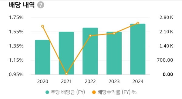 - 배당수익률은 1.3~1.6% 사이 안정적 유지