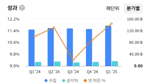 - 최근 분기별 수익성(Net Margin %)은 9.0~11.5% 수준으로 유지