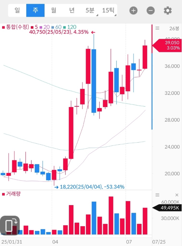 | 매수 전략 | 35,000원 지지 시 분할 매수 유효 / 40,000원 돌파 시 추가 시세 기대 |