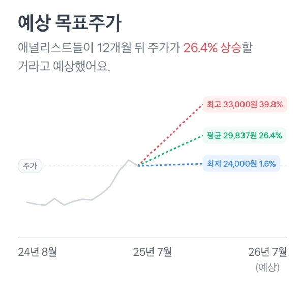 최근 주가는 연중 고점(27,000원대) 대비 12% 이상 조정 후 23,000원대에서 지지 중입니다.