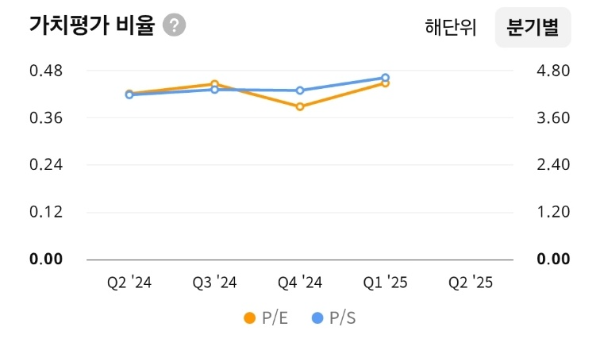 - PS 비율은 최근 분기 기준 약 0.45 내외로 유지되고 있어 저평가 상태로 판단.