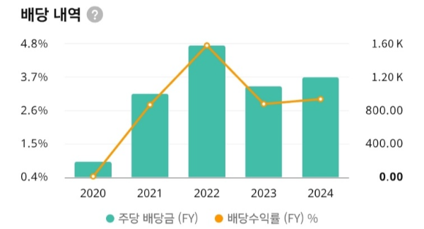 - 2022년 배당수익률이 4.8%까지 상승했으나, 2023-2024년은 2.5-3.0% 수준으로 조정 중.