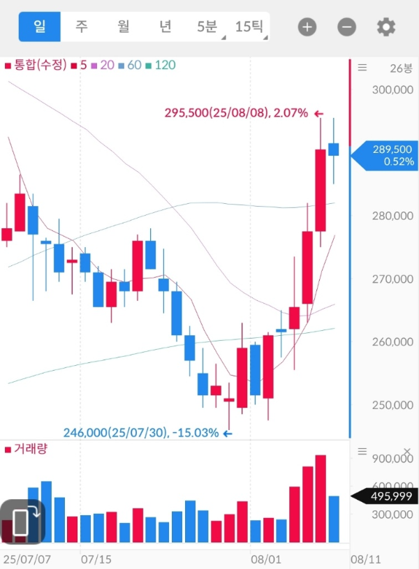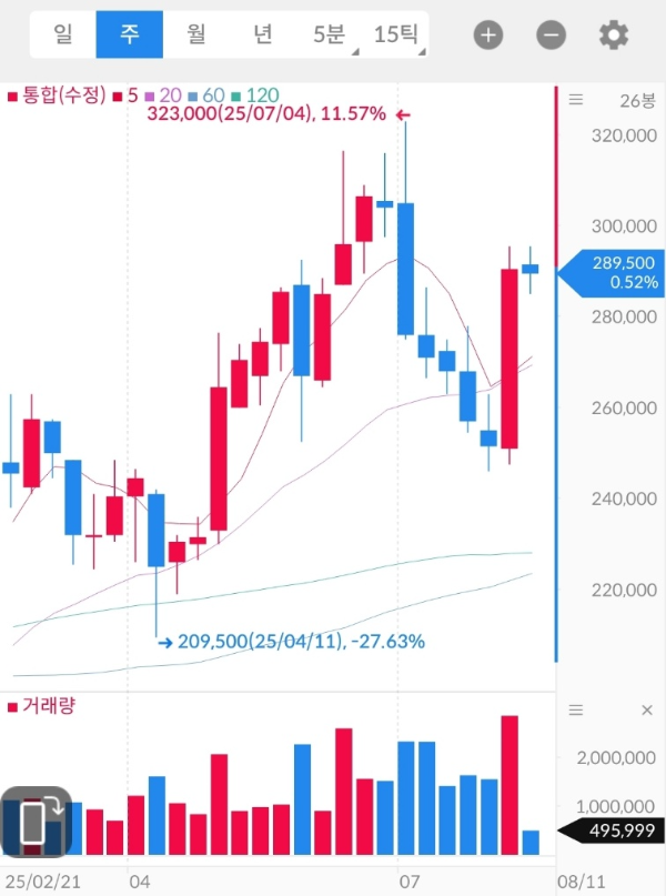 - 단기 관점: 280,000원선 유지 시 기술적 반등세 이어질 수 있으나, 300,000원 돌파 후 안착 여부 확인 필요