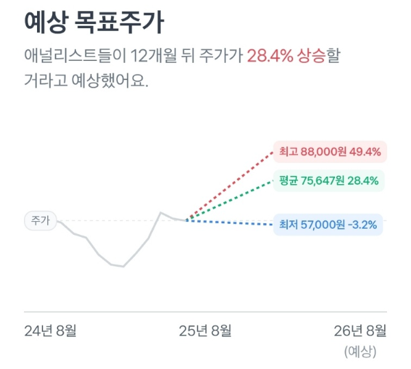 - 최근 흐름: 7월 고점 64,300원 터치 후 -8.8% 조정, 현재 58,600원.