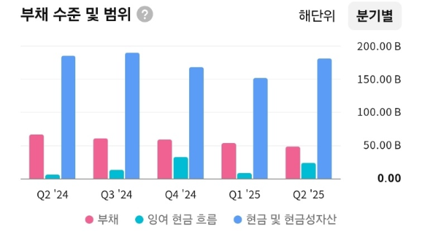 - 부채 규모는 일정 수준에서 안정적으로 유지되고 있으며, 현금 및 현금성 자산도 꾸준히 확보 중.