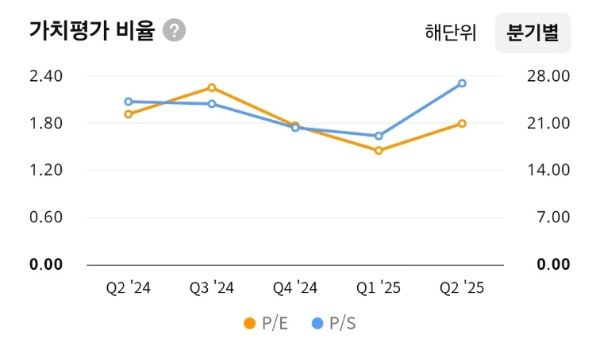 - PER: 22.7배 / PBR: 2.3배 / PSR: 2.5배