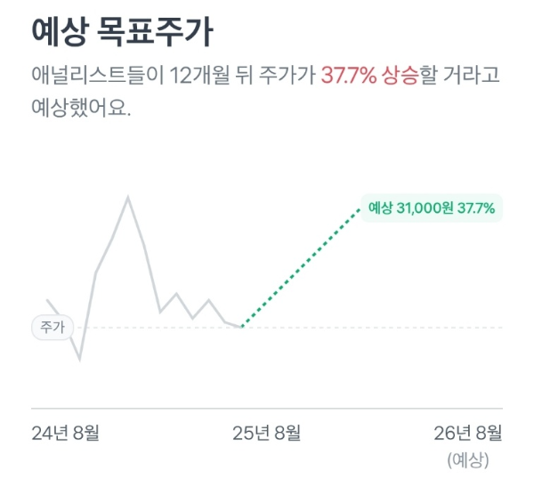 - 저항선: 단기 25,000원, 중기 28,000원 구간. 해당 구간 돌파 여부가 중요.