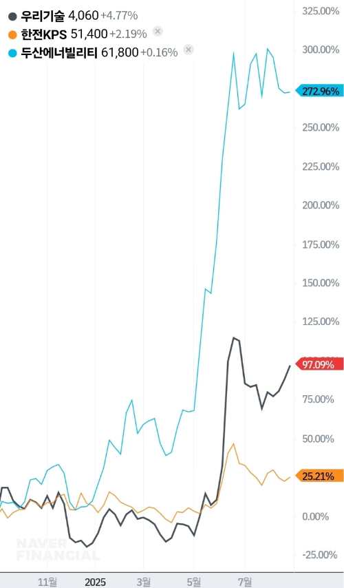 - 두산에너빌리티, 한전기술, 한전KPS, 우리기술, 일진파워 등은 상반기 대비 수십 % 이상 상승