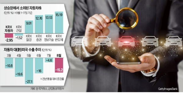 - KRX 자동차지수 9월 -2.95%, 현대차 -3.36%, 기아 -4.63% 하락.