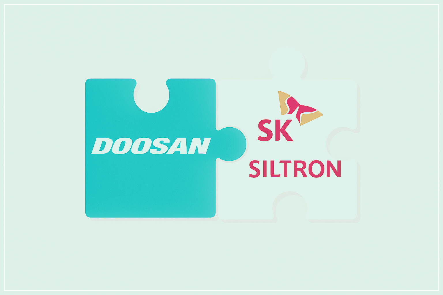 25일 투자은행(IB) 업계에 따르면, 두산은 SK㈜가 보유한 SK실트론 경영권(지분 51%)과