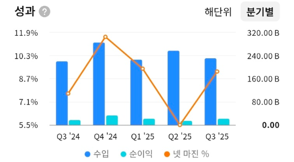 - 분기별 순이익과 넷마진 변동성은 있으나, 연간 기준으로는 8~10%대 마진을 안정적으로 유지하는 구조입니다.
